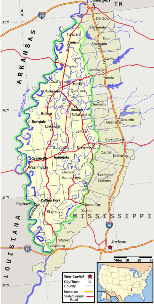 The Delta is NOT the geographic delta of the Mississippi River. You know, the one dumping into the Gulf of Mexico. Technically, it is more like the geographic delta of the Yazoo River. This area is composes some of the most fertile soil in the nation, and is in places 40 feet of topsoil.
